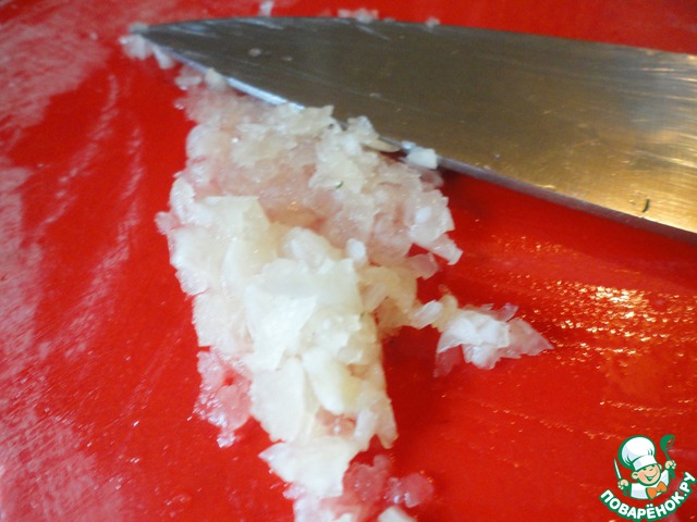 Чеснок пропускаем через пресс или перетираем ножом. Добавляем к кабачкам чеснок и уксус. Аккуратно перемешиваем