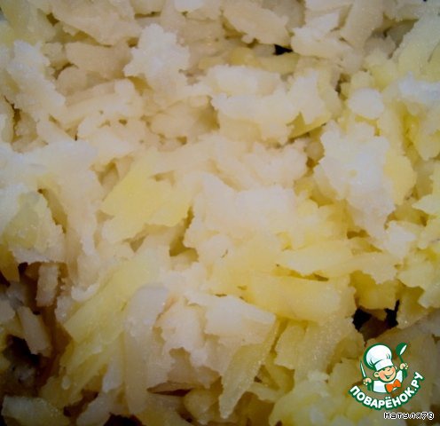 Картофель и морковь отварить, остудить. Картофель натереть на терке.