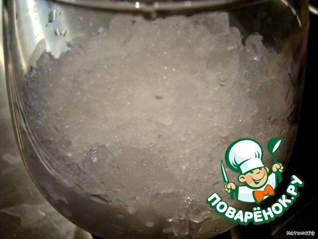 Лед измельчаем в миксере и выкладываем на дно бокала