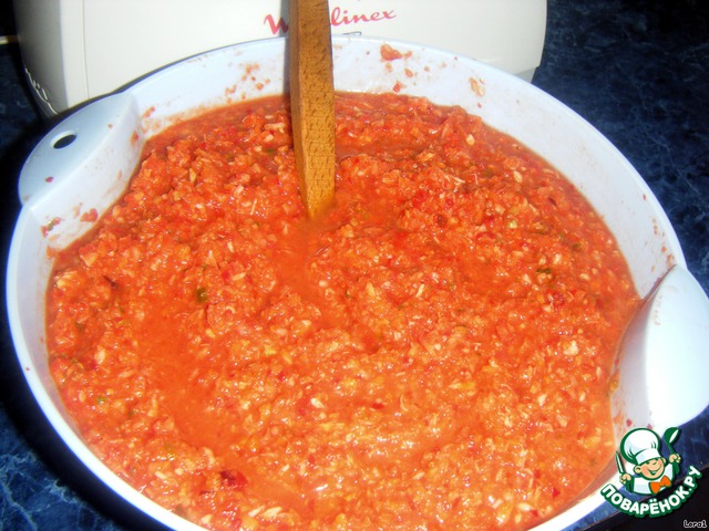 | Делаю эту Аджичку уже лет ... надцать. Всем нравится, попробуйте и вы. Эта Аджичка - кладезь витаминов :). Очень проста в приготовлении, сочная. Хранится в холодильнике. |