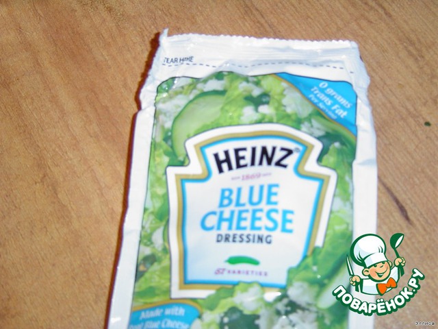 Берем соус из сыра с голубой плесенью и добавляем его к овощам.