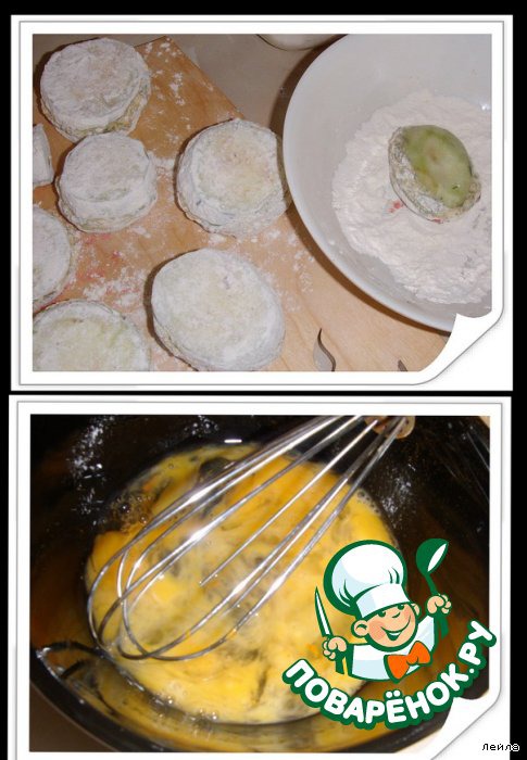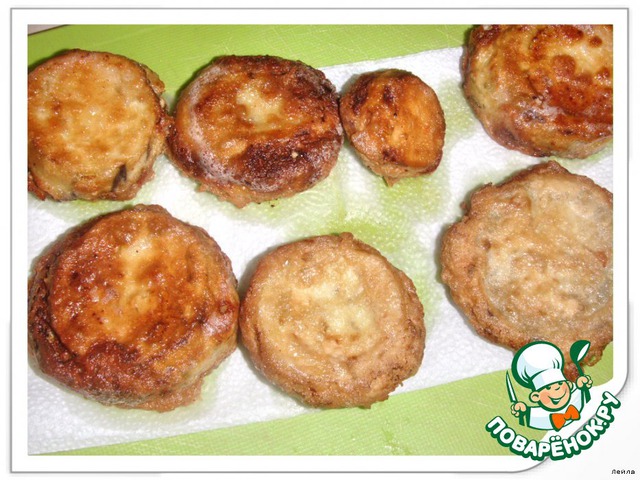 "Mедальоны" вначале обвалять в муке, затем в яйце