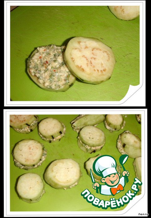 Баклажаны вымыть от горечи, кладем начинку между двумя "медальонами"