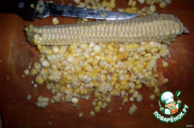 При помощи ножа отделить зерна кукурузы от початков (в одном початке 80-100 гр. зерен).