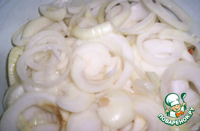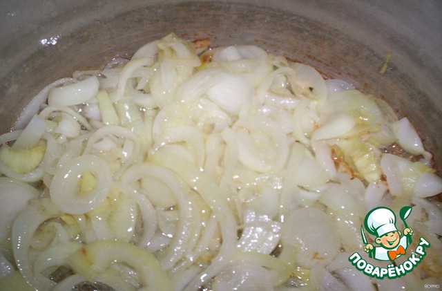 - в алюминиевую емкость налить подсолнечное масло , обжарить в нем лук