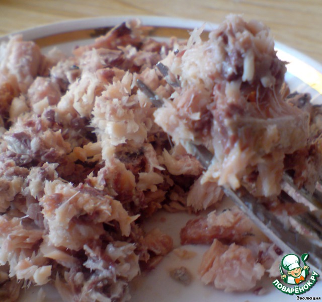 Сайру разминаем вилочкой.
