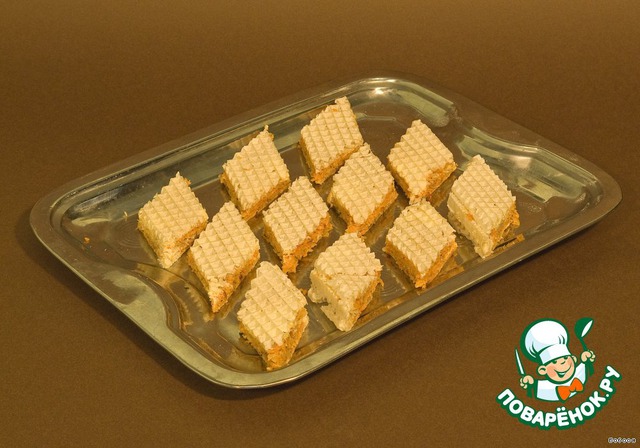 Охлажденные вафли нарезаем ровненькими ромбиками.