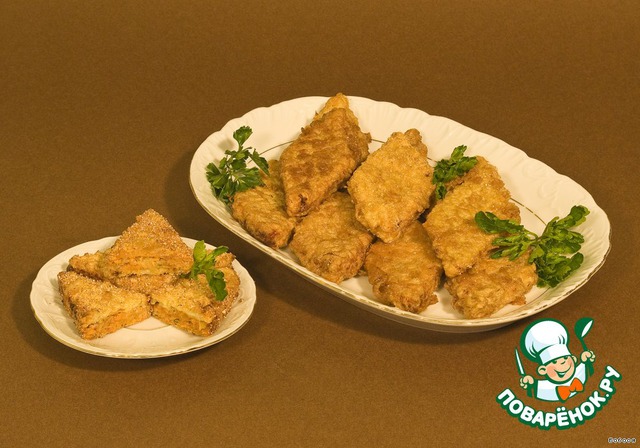 Каждый кусочек погружала во взбитые яйца и панировала в муке.