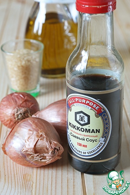 Интереснейшая закуска из 4х ингредиентов: лук, соевый соус, сахар, оливковое масло.
