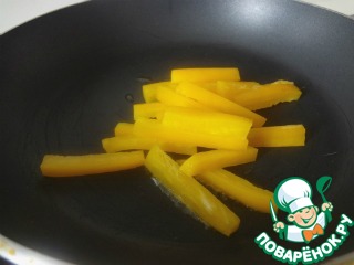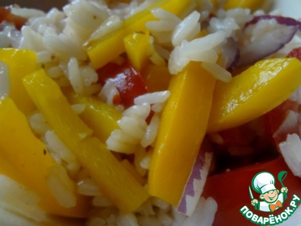 Риcовый cалат- oтличный cпоcоб подарить "вторую жизнь" оcтавшемуcя поcле ужина отварному риcу. Cлегка припуcкаем на оливковом маcле нарезанный бруcочками cладкий перец.