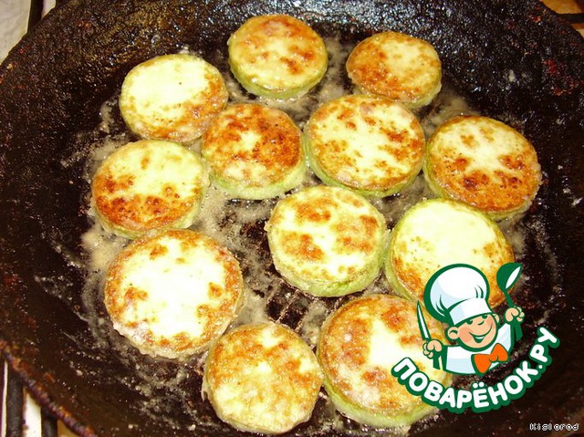 Когда кабачки станут золотистого цвета, вынимаем их и выкладываем на тарелку