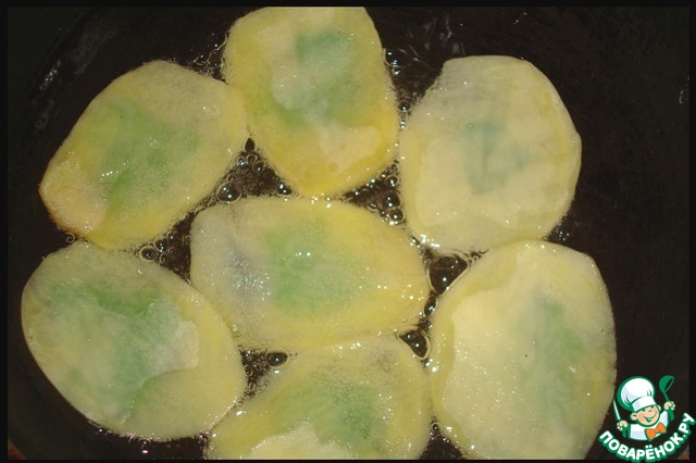 На хорошо разогретом растительном масле жарим чипсы с двух сторон.