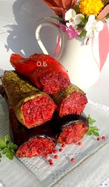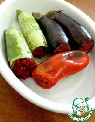 Фаршируем баклажаны, кабачки. (У меня осталась начинка как раз для перчика, я и его начинила).