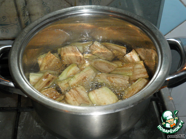 Нарезаем тонкими ломтиками, примерно 0,5 см толщиной. Солим и оставляем минут на 15-20, чтобы вышла горечь. После этого сливаем сок и бланшируем наши баклажаны несколько минут. В этом и отличие, я не слышала, чтобы можно было есть сырые баклажаны, пусть и сушеные, поэтому решила их немного проварить на всякий случай.