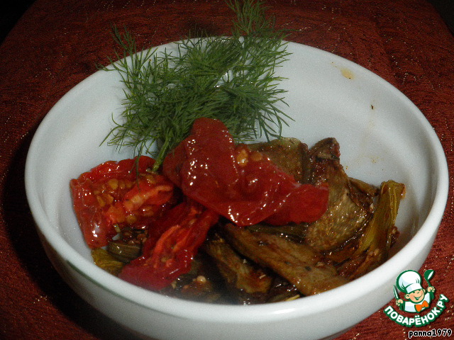 Получилась прекрасная закуска к водочке или на пиццу. А мне понравилось просто с ломтем хлеба, а если еще и чередовать с вялеными помидорами - сказка!