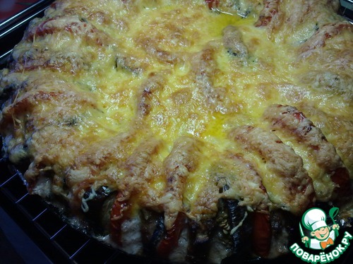 Посыпаем блюдо тёртым сыром и ставим в разогретую духовку при температуре 180 градусов.