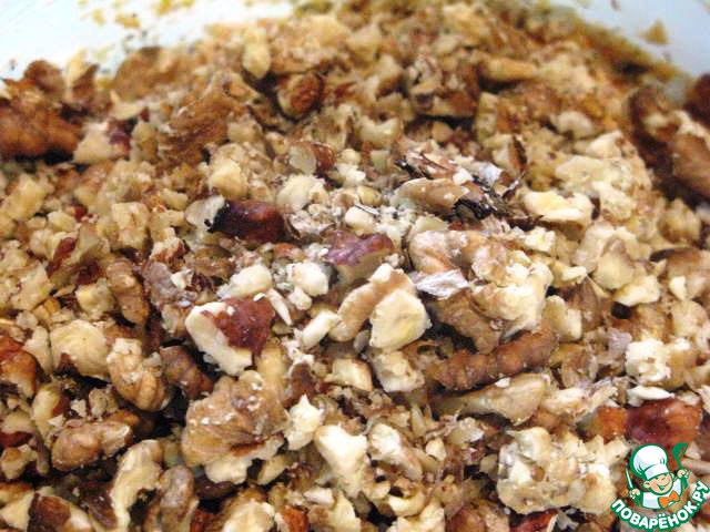Грецкие орехи положить в пакет и измельчить с помощью скалки.