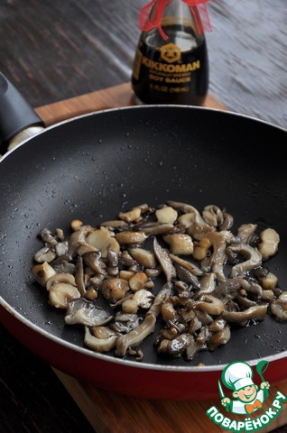 Обжарить в 1 ст. л. оливкового масла, добавить 1 ч. л. соевого соуса, поперчить.