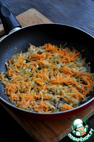 Морковь и лук почистить, помыть. Лук нарезать кубиками, морковь натереть на терке. Овощи слегка обжарить на оливковом масле.