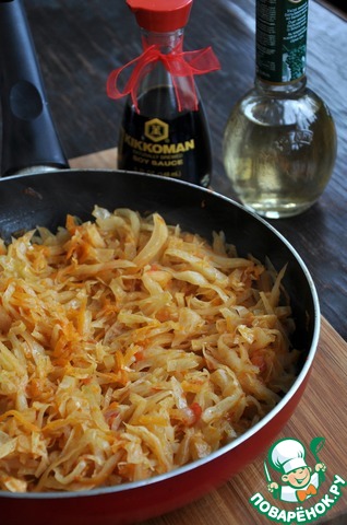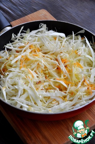 Добавить капусту к луку с морковью, уменьшить огонь и, понемногу подливая воду, тушить 15-20 минут.
