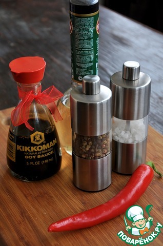Поперчить свежемолотым черным перцем, при необходимости посолить или добавить еще соевый соус по вкусу.