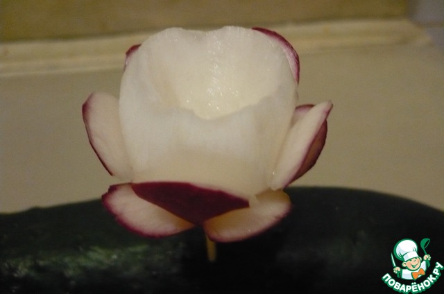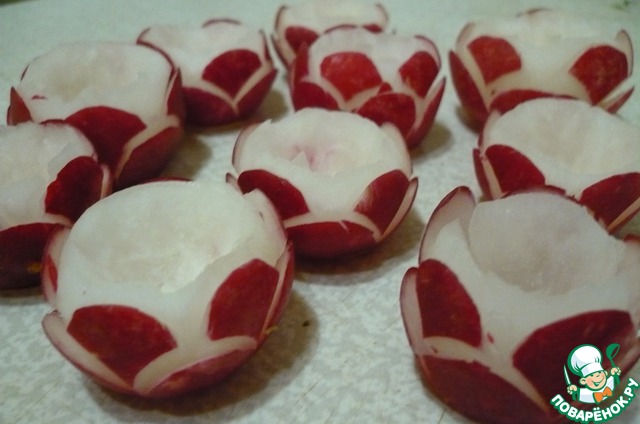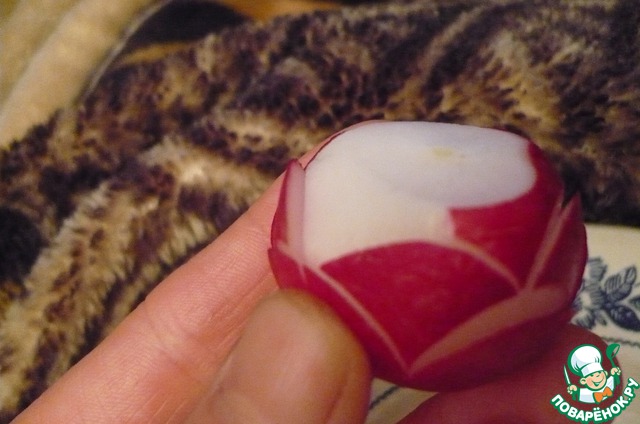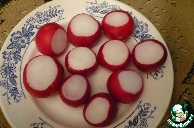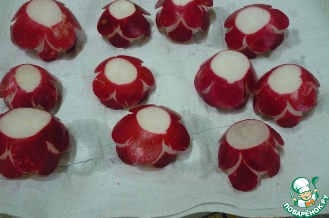 Сначала займемся редисом. Помоем и обрежем с двух сторон так, чтобы поучились бочата.
