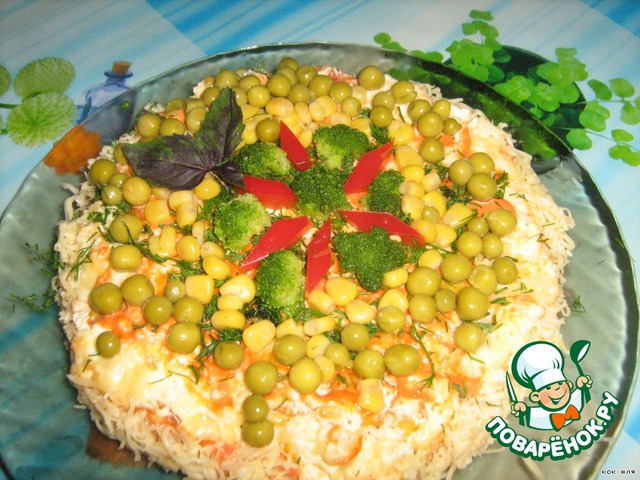 | Нежный закусочный тортик. На конкурс овощных закусок "Овощной светофор". |