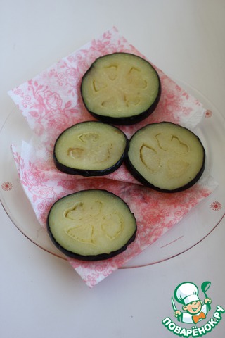 Помойте баклажаны (у меня был один, но большой, мне хватило на 2 порции), нарежьте кружочками примерно 7 мм, посолите по вкусу, дайте постоять. Лично я обошлась без соли вообще.