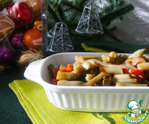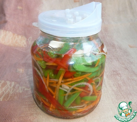 Маринованная стручковая фасоль с морковью, луком и красным сладким перцем