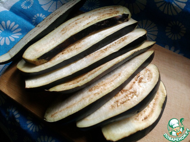 Поставьте наши "язычки" в хорошо разогретую духовку и выпекайте при температуре 200 С 15-20 минут. После выключения духовки оставьте там баклажаны ещё на 20-30 минут, тогда они дойдут до нужной кондиции. Баклажановые "язычки" вкусны как в тёплом, так и в холодном виде. Наслаждайтесь! Приятного вам аппетита!