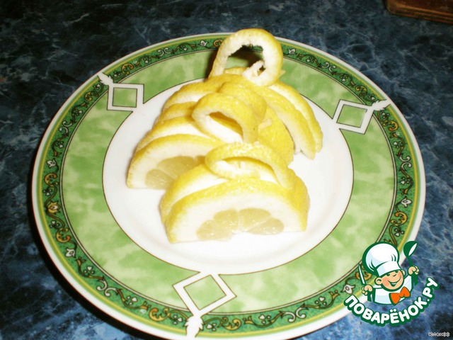 Из лимона делаем лебедей. Нарежьте лимон ломтиками.Сделайте прорез между мякотью и цедрой; отделите цедру почти по всей длине дольки, оставив лишь небольшой участок, где цедра будет составлять с мякотью единое целое. Лучше это делать очень острым ножом, чтобы линия получалась ровной.Загните цедру внутрь, к мякоти, наподобие ручки чашки.
