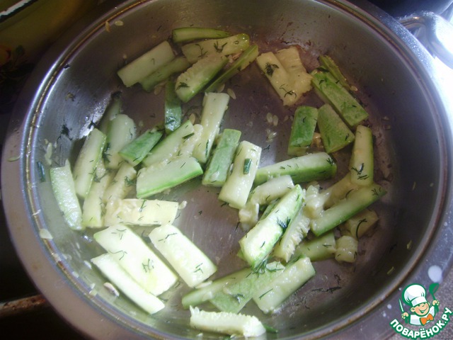 Когда кабачки уже мягкие и подрумянились, добавить лимонный сок (не раньше, т. к. будет металлический привкус) и укроп. Перемешать и снять с огня через 2 минуты.