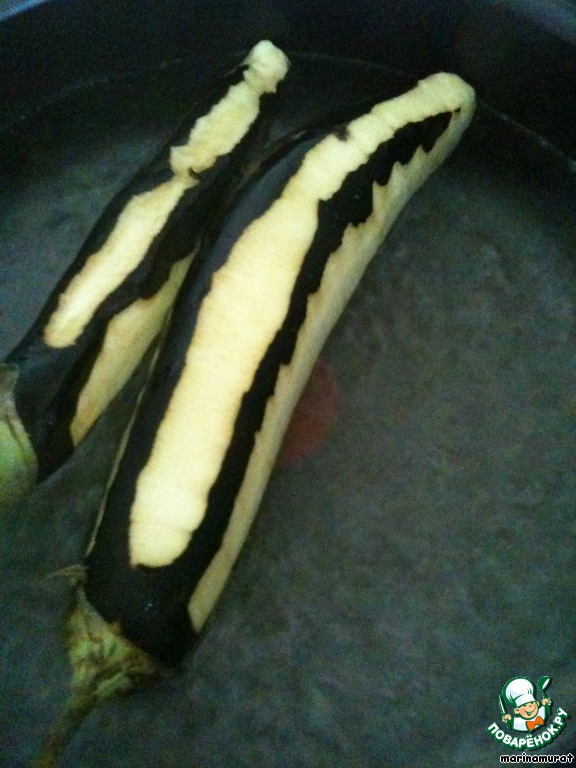 Снять с баклажанов кожу, как у меня, а можете и весь почистить, как хотите.