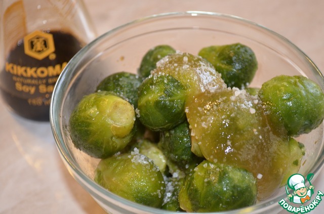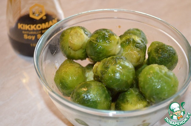 Полить соевым соусом «Киккоман», добавить мед и посолить, все хорошо перемешать.