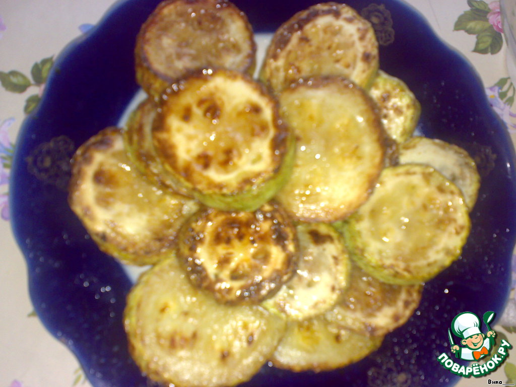 Кабачок нарезаем и обжариваем на растительном масле до золотистости.
