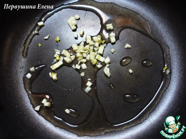 В большой сковороде разогреть масло. Обжарить чеснок в течение 1-2 минут и