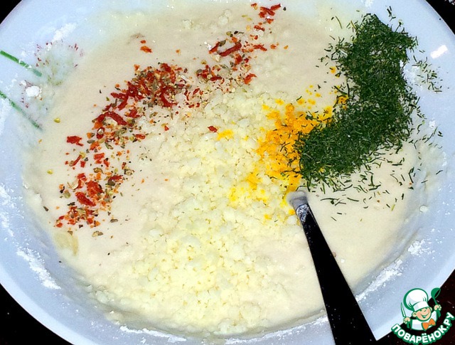Делаем кляр. В миску наливаем воду. Насыпаем муку, сухую смесь, укроп, сыр, соль, перец, куркуму и разбиваем яйцо. Хорошо размешиваем. Соцветия обмакиваем в кляре и кладём в кипящее масло в неширокую кастрюлю. Масло должно покрывать полностью капусту. При необходимости соцветия в масле переворачиваем для ровного румяного и золотистого цвета (масло второй раз не использовать).