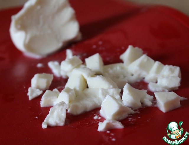 Кубики с крышками приготовить на пару в течение 10 минут до мягкости. Просушить. Кубики заполнить моцареллой и сверху посыпать солью и специями (у меня следующая смесь: кориандр, куркума, имбирь, паприка, чеснок, перец черный, гвоздика, перец красный).