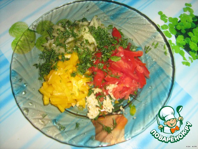 Наша цветная начинка готова, солить не надо - соли достаточно в огурчиках и соусе.