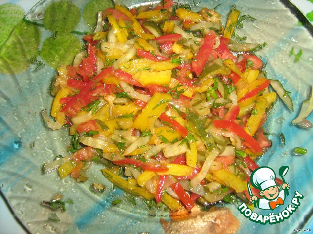 | Лeгкая закусочка с остреньким вкусом. Понравится как взрослым, так и деткам. Приготовление несложное. Для конкурса овощных закусок "Овощной светофор". |