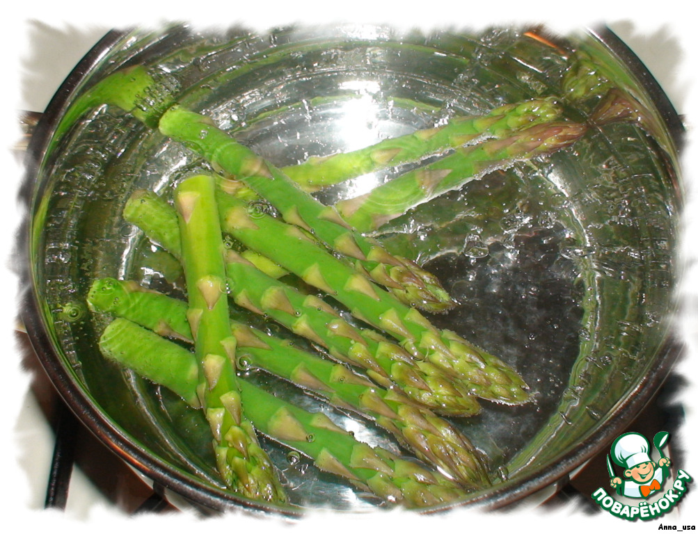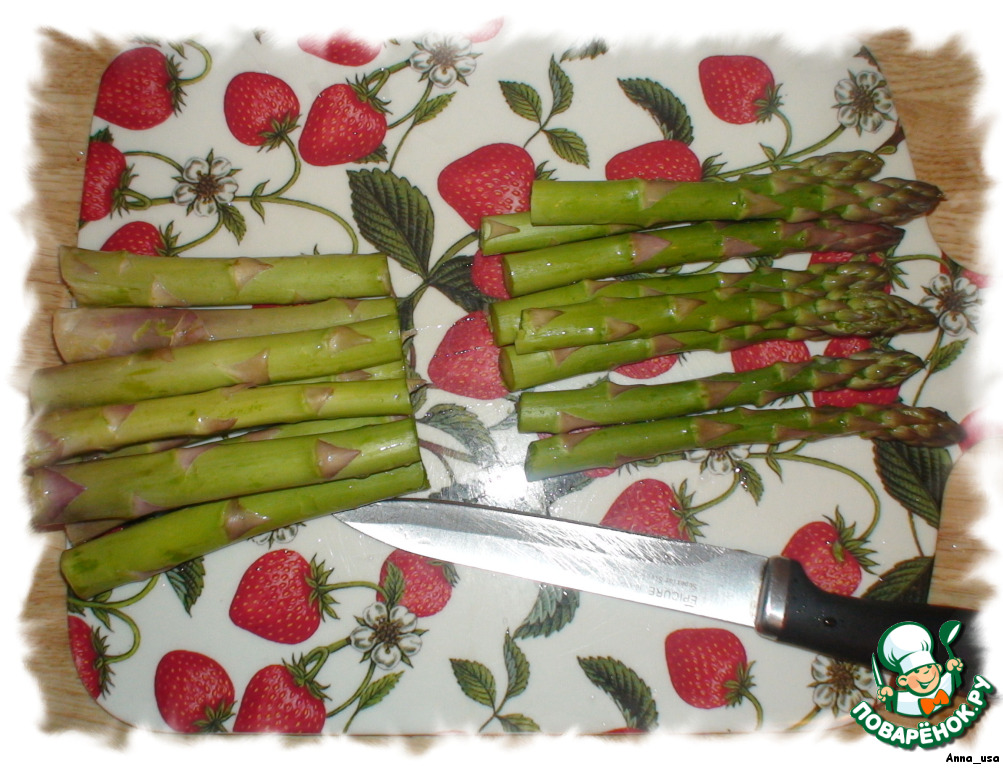 По совету поварёнка Oxana 71 спаржу не разрезайте, а отламывайте корешки (читайте в комментариях).