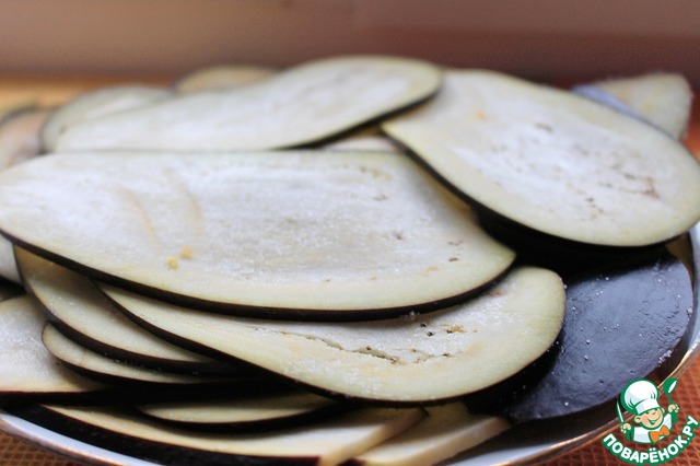 Баклажаны помыть, отрезать хвостики. Нарезать в длину пластину толщиной примерно 1-2 мм. Посыпать солью и дать постоять 15-20 минут. После этого промыть под проточной холодной водой и просушить бумажным полотенцем. Обжарить на разогретой сковороде в небольшом количестве растительного масла (его требуется совсем чуть-чуть). Не отходите далеко от плиты, баклажаны жарятся быстро!