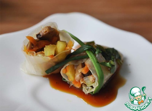 | Рисовая бумага идеальная "тара" для закусок на пикнике. Сама по себе нейтральная по вкусу, она прекрасно подходит для порционной подачи блюд на природе. Предлагаю Вам рецепт тушёных овощей в рисовой бумаге и в качестве бонуса - острый соус. |
