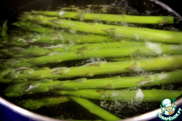 Спаржу помыть и положить в купящую вода на 4 минуты.
