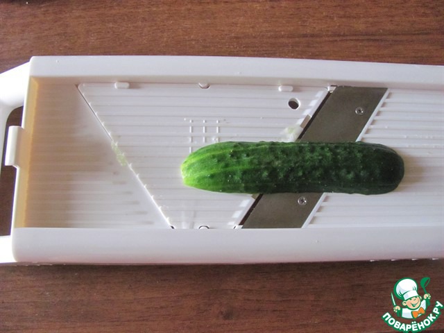 Огурцы помыть и натереть на такой тёрке Бёрнер. У меня из огурца вышло 6 целых пластинок.