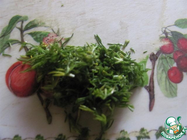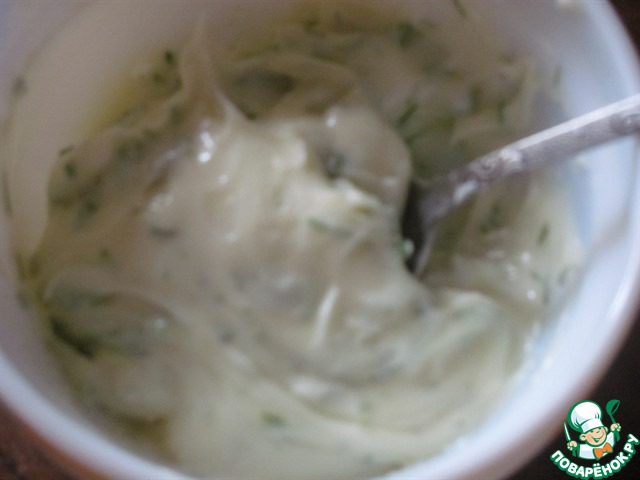 Сливочный сыр перемешаем в пиалке с укропом, солью и перчиком.