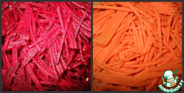 Свеклу и морковь трём на тёрке.