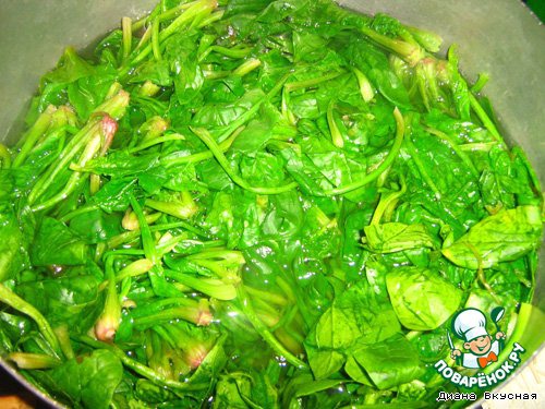 Отварить шпинат до готовности (пока стебель не станет мягким)