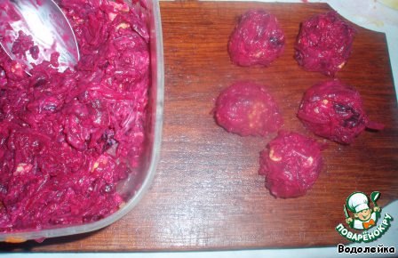 По итогам поедания закуски могу сказать такое: первыми улетели (да-да, именно улетели) шарики с оливкой внутри, потом на втором месте были морковные шарики (с обеих морковок), а вот шарики из буряка уходили в последнюю очередь (особенно те, которые с селедкой были). Но несмотря ни на что съели все.