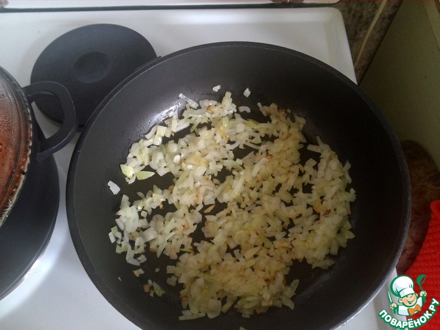 Лук нарезать мелким кубиком. Поджарить на масле с добавлением сахара до прозрачности.